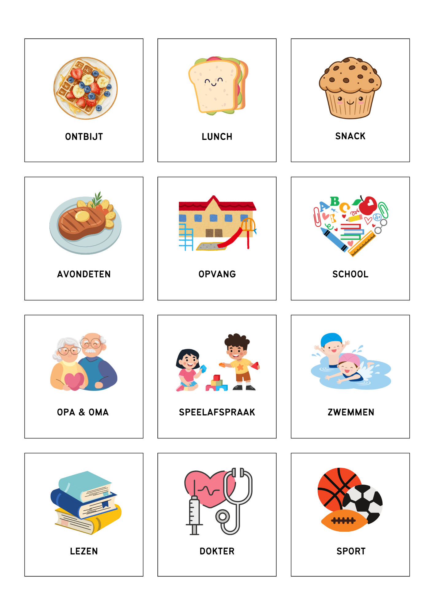 • Bevordert zelfstandigheid – je kind kan zelf de kaartjes volgen en herkennen wat de volgende activiteit is.